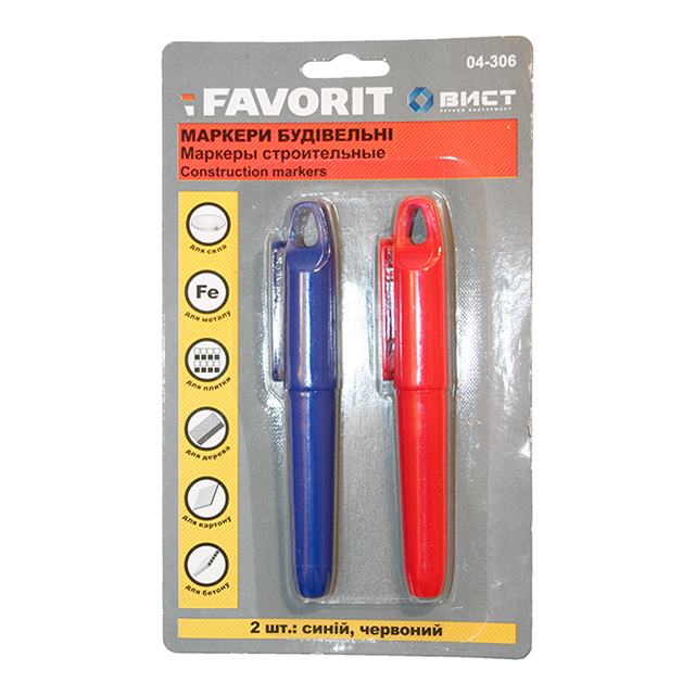 В комплекте синий и красный маркеры. Для выполнения разметочных работ по стеклу, металлу, керамике, по дереву, гипсокартону, бетону.