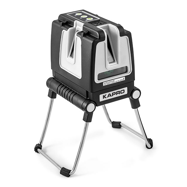 Лазерний рівень оснащений більш яскравим зеленим світлодіодом і призначений для виконання широкого спектру професійних будівельних робіт. Проектує одну горизонтальну лінію і дві вертикальні взаємно перпендикулярні лінії з перетином на стелі і побудовою кута 90° на підлозі. Варіанти включення площин: 1 вертикальна, 2 вертикальні, 2 вертикальні і 1 горизонтальна, 1 горизонтальна. Управління здійснюється однією кнопкою, розташованою зверху приладу. Візуальна індикація сигналізує про вихід за межі діапазону самовирівнювання. Лазерний рівень може працювати в режимі маркера із заблокованим маятником для побудови площин з потрібним кутом нахилу, який виставляється за допомогою регульованих металевих ніжок. Кнопка перемикання в імпульсний режим дозволяє використовувати з рівнем приймач-детектор (не входить в комплект) для виконання зовнішніх робіт удень або в яскраво освітлених приміщеннях. Міцний прогумований корпус захистить прилад при випадковому падінні з невеликої висоти.