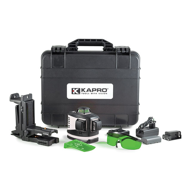 Лазерний рівень Kapro 883G Prolaser 3D All-Lines Green - універсальний планувальний інструмент для професіоналів. Виконаний в захищеному корпусі, оснащений яскравим зеленим світлодіодом, завдяки якому лазерні лінії більш помітні і виразні. Проектує три площини: горизонтальну (360°), передню вертикальну (360°) та бічну вертикальну (360°). Функція блокування маятника дозволяє використовувати нівелір в якості маркера. Підходить для робіт як всередині, так і зовні приміщень за рахунок наявності імпульсного режиму. За допомогою спеціального приймача-детектора максимальна дальність роботи приладу може бути збільшена до 70 м. В основі розташовані дві посадкові різьби (1/4" і 5/8") для встановлення лазерного рівня на штатив. Комплектується зйомним акумулятором ємністю 2600 мАч, одного заряду якого достатньо для 12 годин безперервної роботи. У разі необхідності акумулятор може бути замінений на 4 батарейки типу AA. Міцний прогумований корпус рівня має ступінь захисту від вологи і пилу IP65.