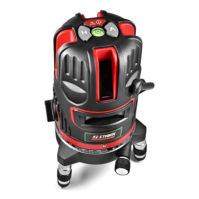 Лазерний рівень Stark LL-1502G з яскравим зеленим променем для внутрішніх та зовнішніх робіт. Проектує одну горизонтальну і одну вертикальну лінію. Присутня звукова індикація для контролю роботи нівеліра в режимі самовирівнювання. Ступінчасте регулювання яскравості лазера дозволяє поліпшити видимість ліній за різних умов освітленості. Поворотна основа на 360° з можливістю тонкого налаштування. Лазерний рівень може працювати як від батарейок, так і від мережі за допомогою блоку живлення з роз'ємом USB (входить в комплект). Зручна сумка-кейс для транспортування та зберігання приладу.
