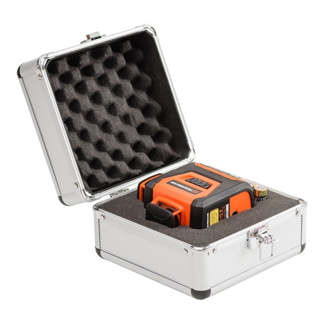 Комплектація: лазерний рівень, елементи живлення (4 шт.), інструкція з експлуатації, гарантійний талон, доповнення (адреси сервісних центрів), алюмінієвий кейс.